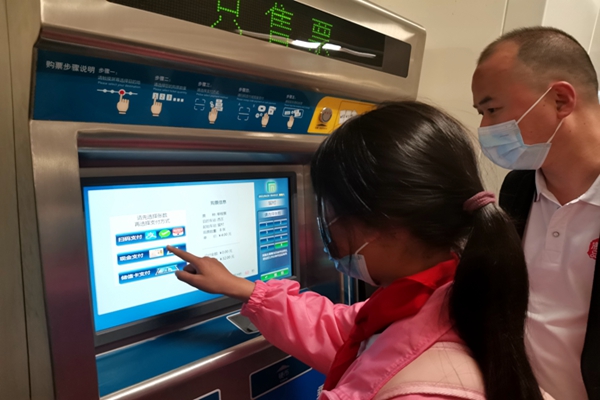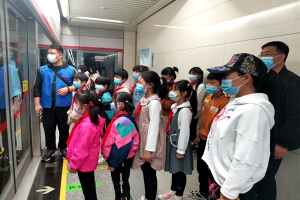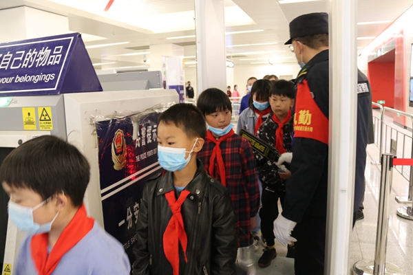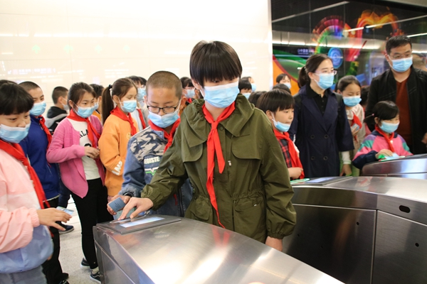 上午9:00,經(jīng)過1個半小時車程,大巴車到達(dá)石家莊留村地鐵站。大多數(shù)孩子從來沒有坐過地鐵,對周圍一切都感到新奇。志愿者向孩子們詳細(xì)講解地鐵票是怎樣購買的,怎么選擇目的地,有幾種支付方式,并鼓勵孩子們自己試一試。剛開始孩子們還有些靦腆羞澀,不知道怎么做,經(jīng)過幾次嘗試,就對操作越來越熟悉,不需要志愿者去引導(dǎo)了。在志愿者的引導(dǎo)下,同學(xué)們拿著自己的地鐵票,排隊過安檢、刷卡,順利進入地鐵。