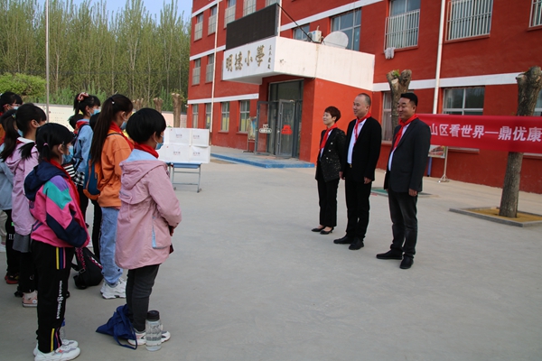 在歡迎儀式上,上閆莊明德小學(xué)邸海霞主任對愛心單位河北鼎優(yōu)康品生物科技有限公司和明德公益、陽光公益的愛心善舉表示感謝,這次活動對山區(qū)的孩子們意義重大,一定會珍惜這次機會。