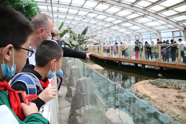 到達(dá)終點站西王后,同學(xué)們坐上大巴車前往石家莊動物園。火烈鳥、鱷魚、長頸鹿、大熊貓……之前只在書本和電視上見過的動物終于見到真的了。看到黑熊時孩子們興奮的討論起來,“這和動畫片里的不一樣”“它還會站起來一搖一晃的”。到獅虎谷后,孩子們的興奮勁更是達(dá)到高潮,“獅子的叫聲好大,離這么遠(yuǎn)都能聽到”“還有白色的老虎,它長得好大啊”,孩子們一邊目不轉(zhuǎn)睛的看著,一邊感慨個不停。在一旁的老師不時地提醒孩子們仔細(xì)觀察這些動物,這也是難得的積累作文素材的機會,希望孩子們能抓住這次機會。