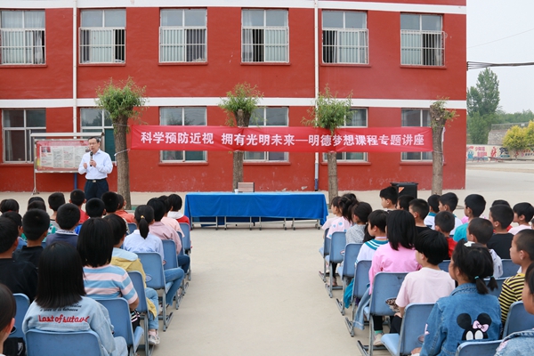 5月14日下午,明德公益攜手陽光公益,邀請省四院眼科專家管永清主任、口腔科主管護(hù)師李玉潔老師,走進(jìn)行唐上閆莊明德小學(xué),為358名學(xué)生開展“科學(xué)預(yù)防近視,愛護(hù)口腔衛(wèi)生”夢想課程知識講座。