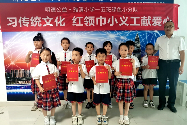 7月13日下午,明德公益應雅清小學一五班綠色小分隊邀請,與10名小學生及家長一起開展了“習傳統文化,紅領巾小義工獻愛心”公益活動,學習傳統文化,獻出一份愛心。