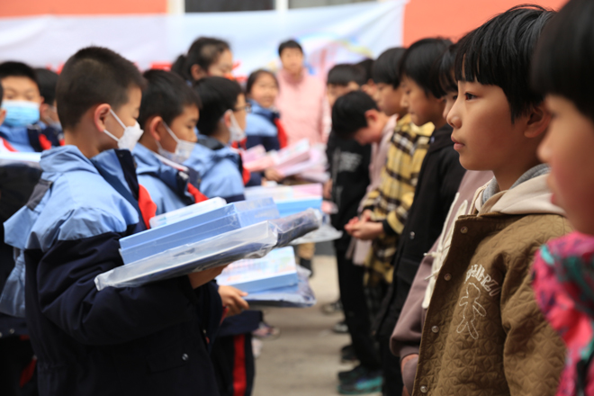3月27日上午,蘇家臺(tái)小學(xué)教職工們,將其余六十多份學(xué)習(xí)用品禮包全部發(fā)放給活動(dòng)當(dāng)天未能到場的低年級(jí)學(xué)生。