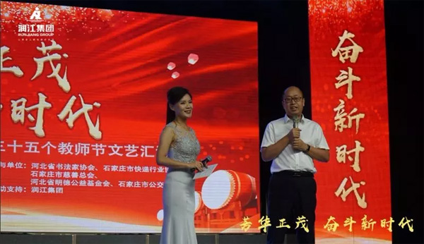 郝總代表潤江集團向在場教師和廣大教育工作者致以誠摯的節日問候,同時呼吁師生們加入到首屆潤江杯“我走我快樂·健走石家莊”全民健步走活動和“閱讀中國·悅享生活”全民閱讀公益活動中來。