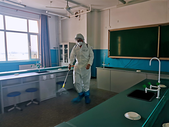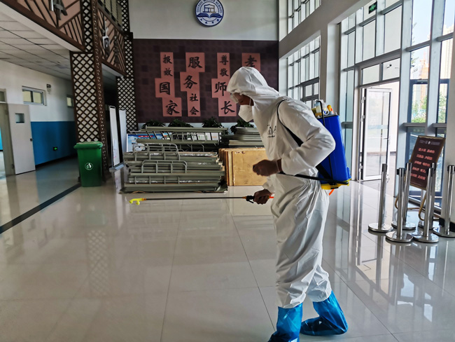 作為本次公益消殺活動的首站,5月22日,潤江物業(yè)首批10余名消殺志愿者來到藁城區(qū)丘頭中學,有條不紊地對教室、操場、實驗室、籃球場、演出室進行地毯式的全面消殺,尤其是走廊、樓梯、操場、地面、墻壁、角落、門框、門把手、桌椅、衛(wèi)生間、洗漱臺以及容易滋生細菌的衛(wèi)生死角進行了細致徹底的消殺處理。